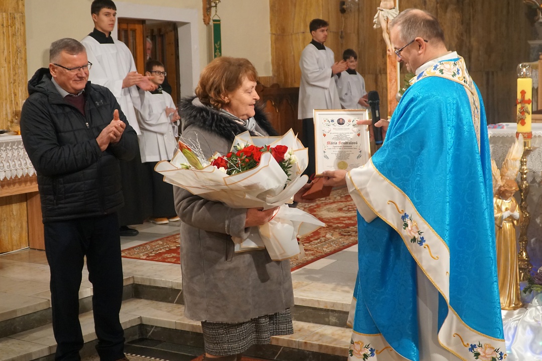 Pri príležitosti tohto významného jubilea jej diecézny biskup Mons. František Trstenský udelil Apoštolské požehnanie ako prejav vďačnosti a uznania za roky obetavej služby v našej farnosti. Poďakovanie a požehnanie bolo odovzdané počas sv. omše vo štvrtok 15. januára 2026 v kostole Nanebovzatia Panny Márie v Hladovke vdp. Mgr. Miroslavom Žmijovským.